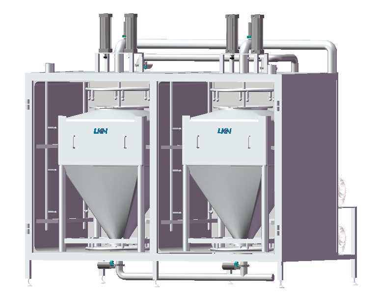 優(yōu)康恩自動化料系統(tǒng)用于對粉料和其它配料進(jìn)行乳化和水化的混料系統(tǒng)設(shè)備。其中真空混料機可在密閉真空容器下進(jìn)行高速剪切乳化混合綜合產(chǎn)品、各種粉末和液體等,每小時化粉量可達(dá)到3T-5T。優(yōu)康恩自動化料系統(tǒng)可利用真空作用將配料輸送到化料設(shè)備中,省去了操作工承擔(dān)這項繁重工作的需要。